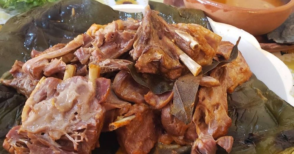 This dish is a portion of juicy and soft lamb meat, which is previously seasoned and baked in holes (holes in the ground) with embers. The peculiar thing about the dish is that the lamb meat is covered with maguey leaves (a secret now revealed), which experts and those of us who love barbecue say, gives it that unique and special flavor that characterizes it.